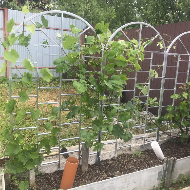 Внимание! Новая вариация товара: в верхней части изменен рисунок. Стало проще собирать: состоит всего их двух секций+ножки. Также новые размеры упаковки: 93 см*82 см*5 см. Вес с коробкой — 6,2 кг, вес без упаковки — 4,95 кг. Шпалера для цветов, вьющихся растений и винограда из оцинкованной трубы. Высота над землей — 150 см., ширина — 92 см. Высота вместе с ножками 172 см, длина ножек — 22 см.